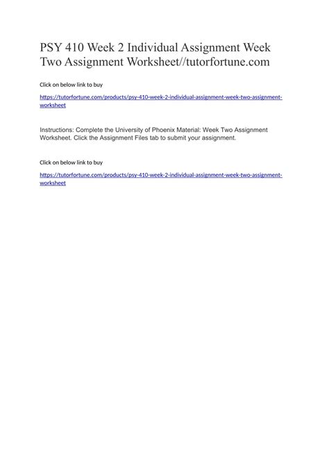 Week Two Assignment Worksheet Psy 410 - Psy 410 week 2 week two assignment worksheet complete the university of phoenix material: Week one assignment worksheet match the definitions to the correct theoretical model. It includes assignments on timelines of abnormal. Digital portfolios, online yearbooks, online catalogs, digital photo albums and more. Issuu converts static files into: